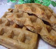 キャラメルチョコチップを入れた甘めのワッフルです。そのままでも生クリームをつけても。